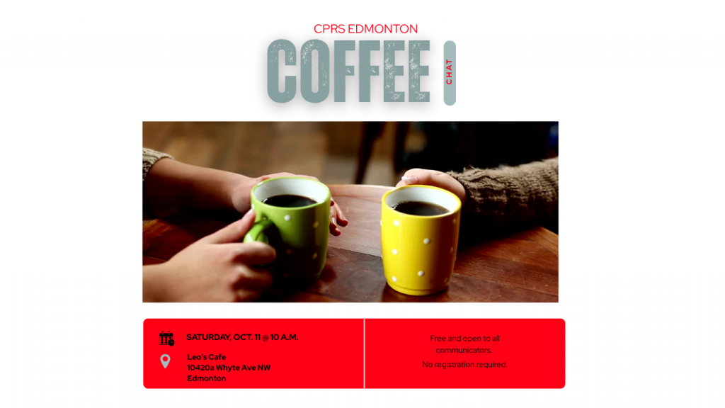 Looking for a relaxed way to connect with Edmonton’s communications community? Join us for our next CPRS Edmonton Coffee Chat — a casual monthly meet-up where conversations flow as easily as the coffee.