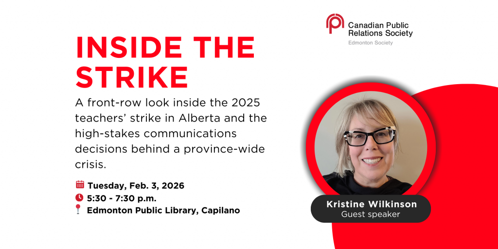 CPRS Edmonton is proud to present this applied, scenario-based learning session featuring Kristine Wilkinson, Associate Coordinator of Communications at ATA, as guest speaker.